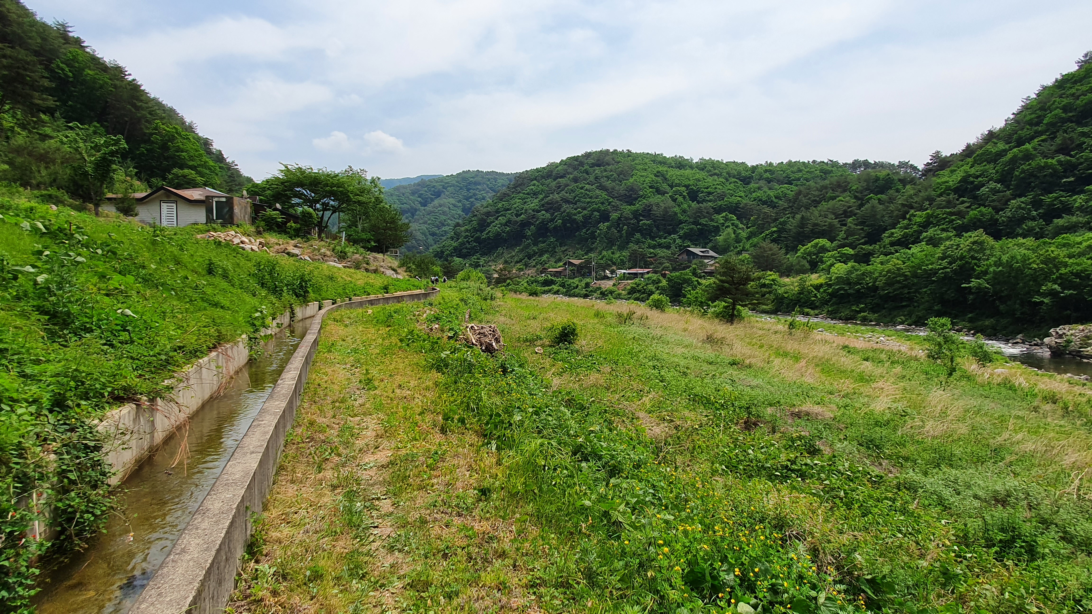 내린천의 물을 이용하기 위해 도랑을 만들어